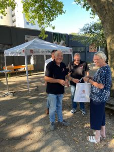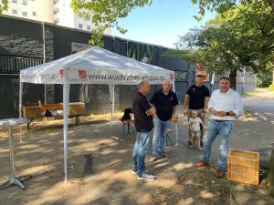 Wie angekündigt, war die Wülfrather Gruppe am 18.08.2025 nachmittags mit ihrem Wahlstand auf dem „roten Platz“.